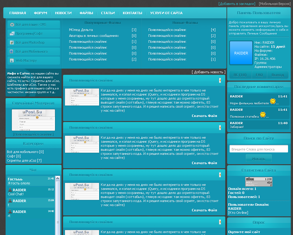 Скриншоты Шаблон Blue Diz для сайтов системы ucoz